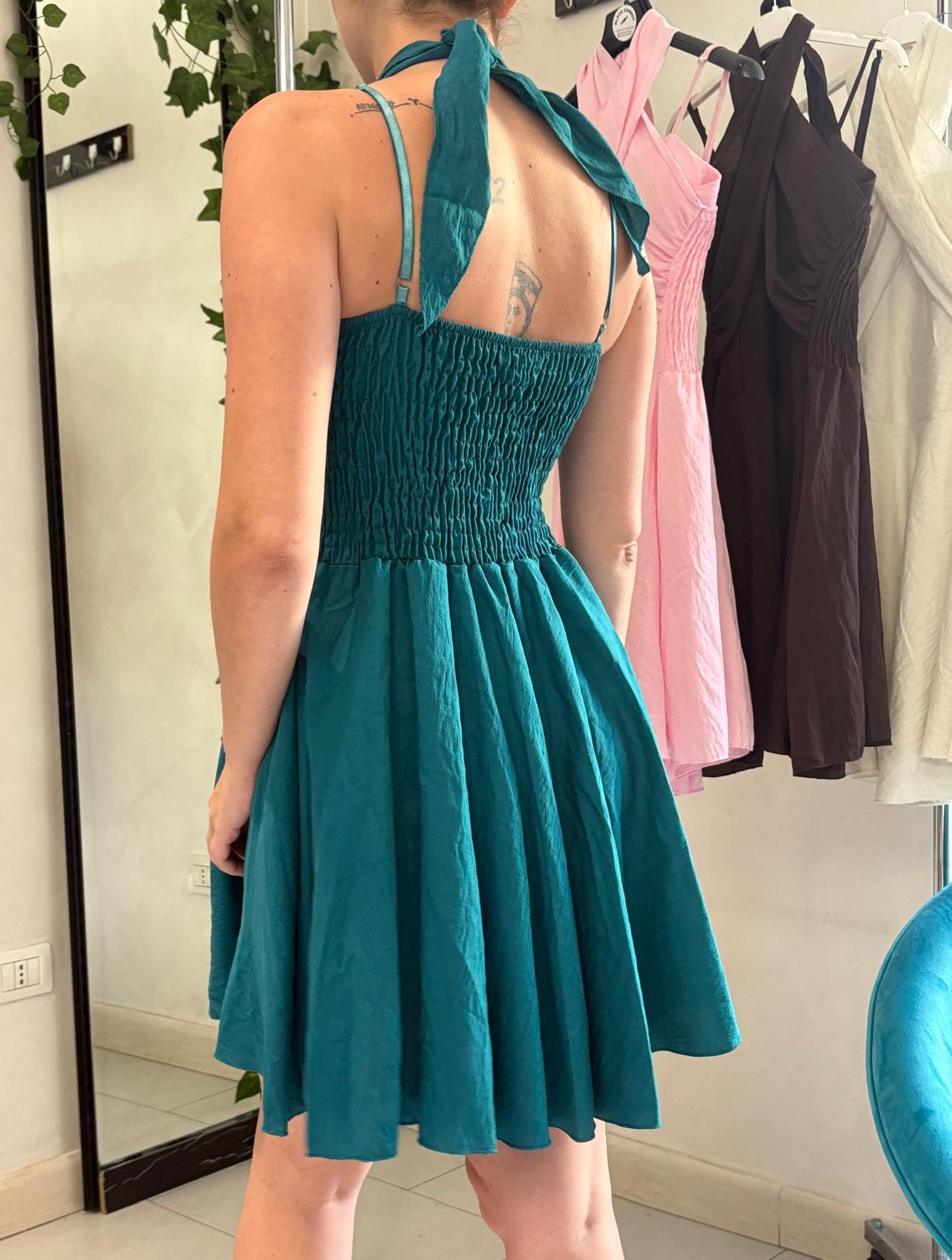 Multi-tie mini dress, è l’abito corto in viscosa leggerissimache si trasforma ogni volta che lo indossi. Due fasce lunghe e morbide si incrociano, si annodano, si avvolgono al corpo creando scolli profondi, allacciature sensuali o silhouette più castigate, a seconda del tuo mood.