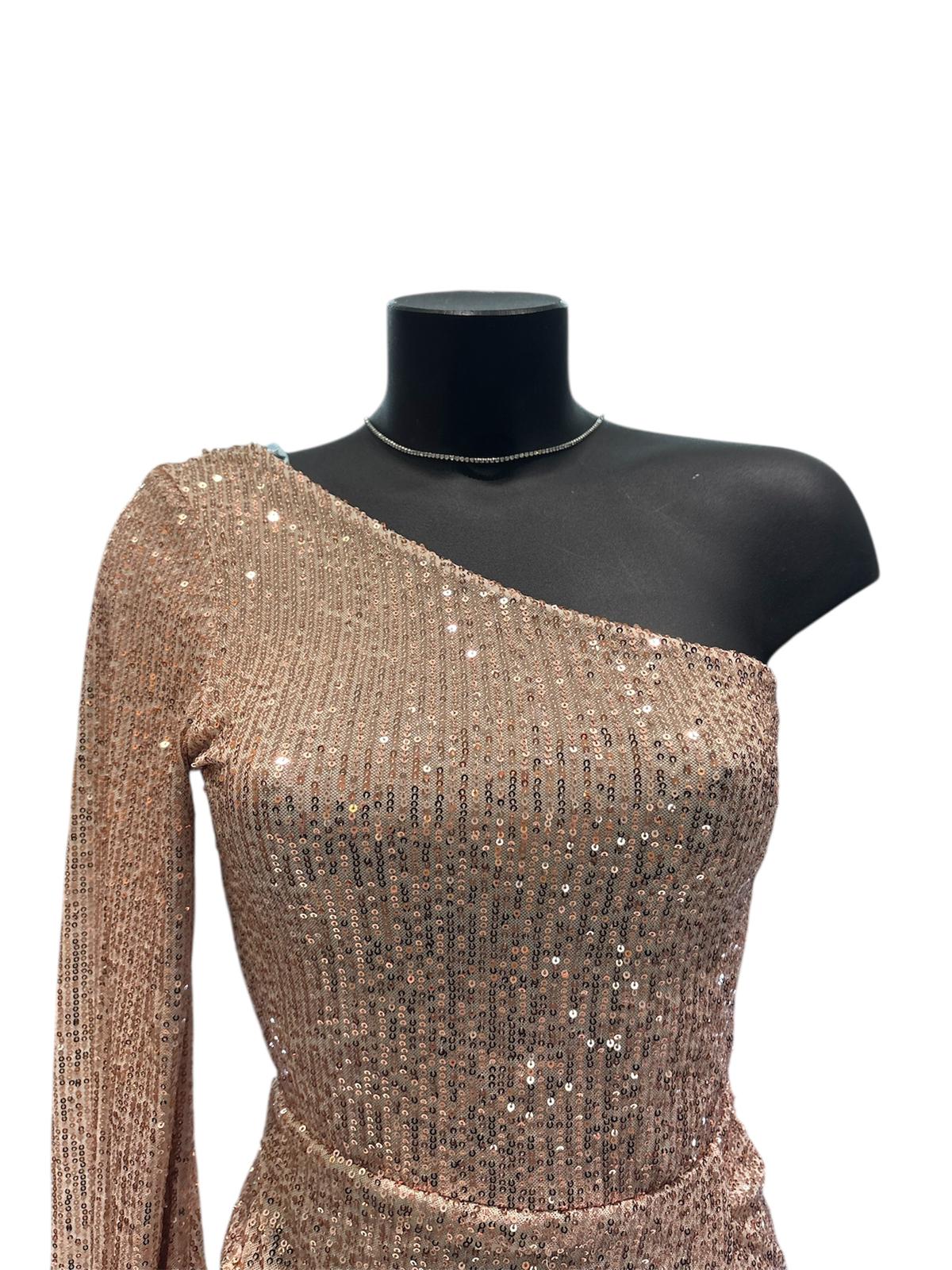 Monospalla,  paillettes nere che catturano ogni luce e la riflettono con carattere.