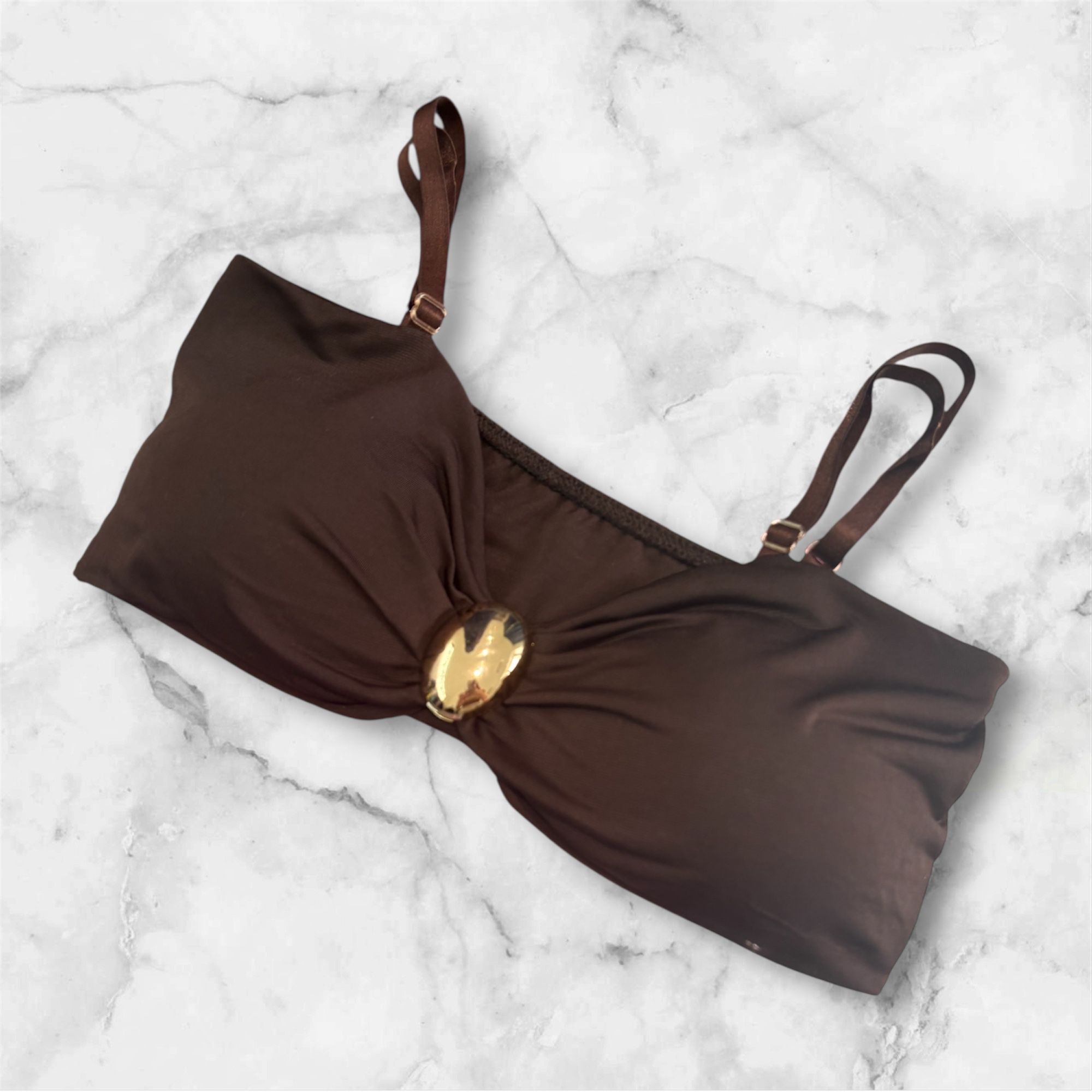 Il top coordinato ha coppe integrate per offrirti il giusto sostegno e comfort anche senza reggiseno. Il fit è pensato per abbracciare il corpo con la giusta struttura, senza rinunciare alla libertà di movimento.