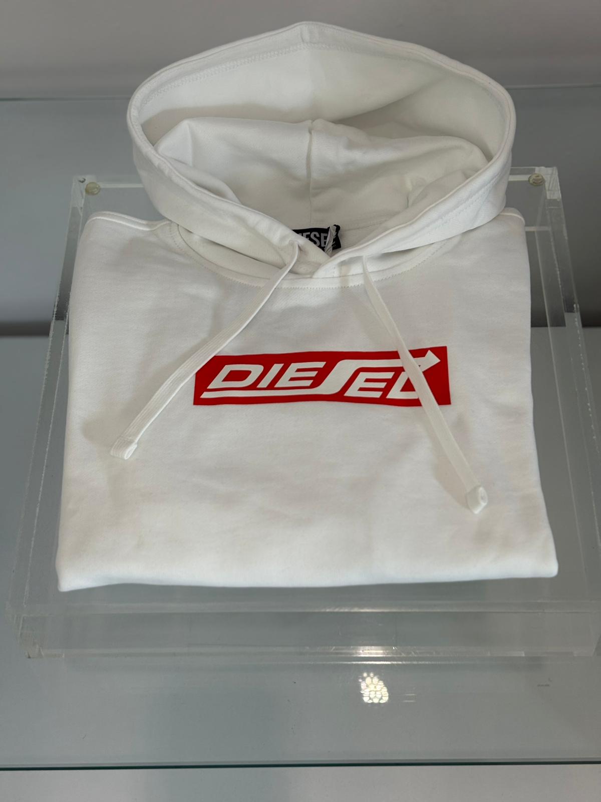 Felpa Diesel con box logo piccola e cappuccio , dal mood decisamente urban e contemporaneo.