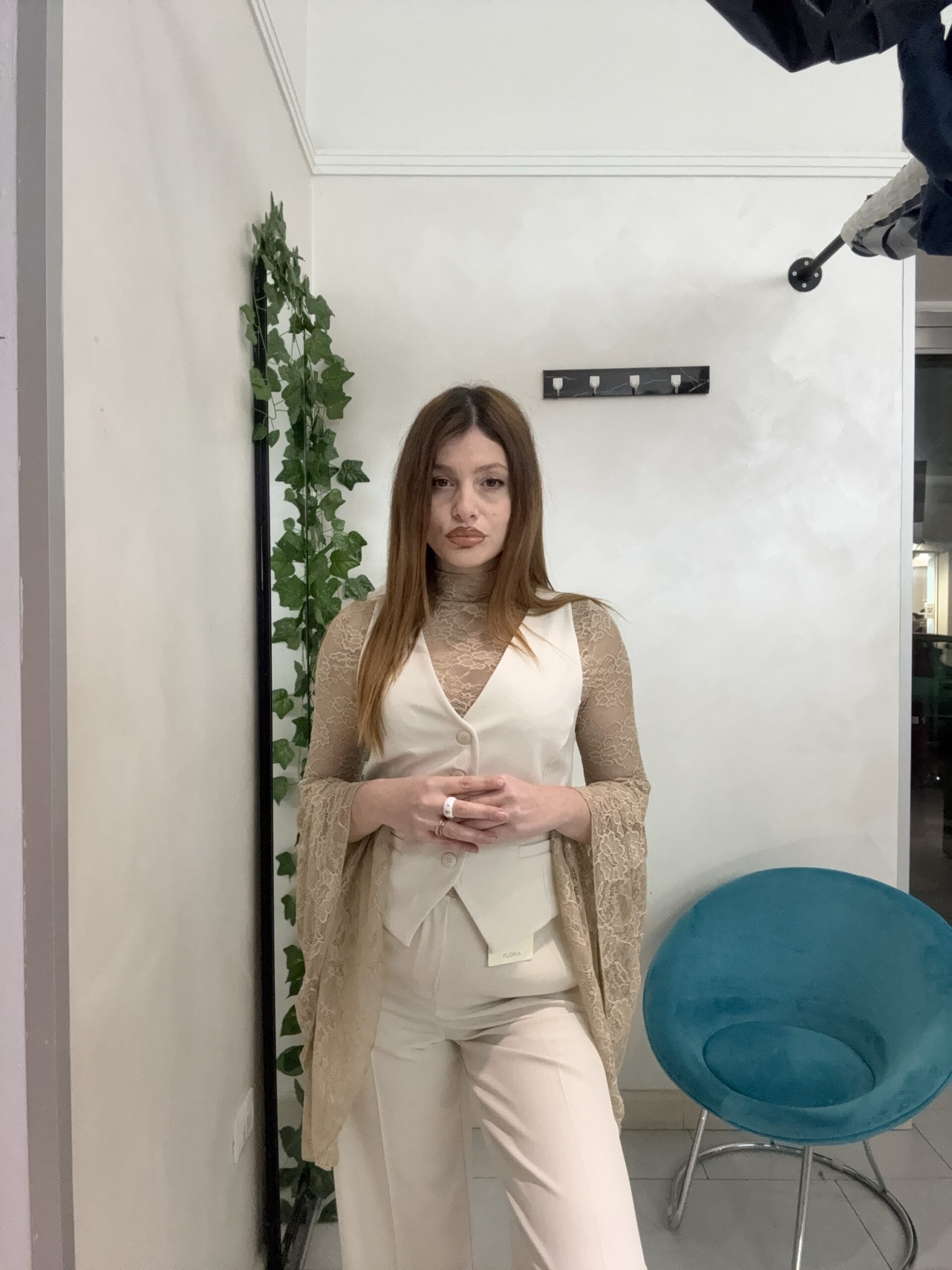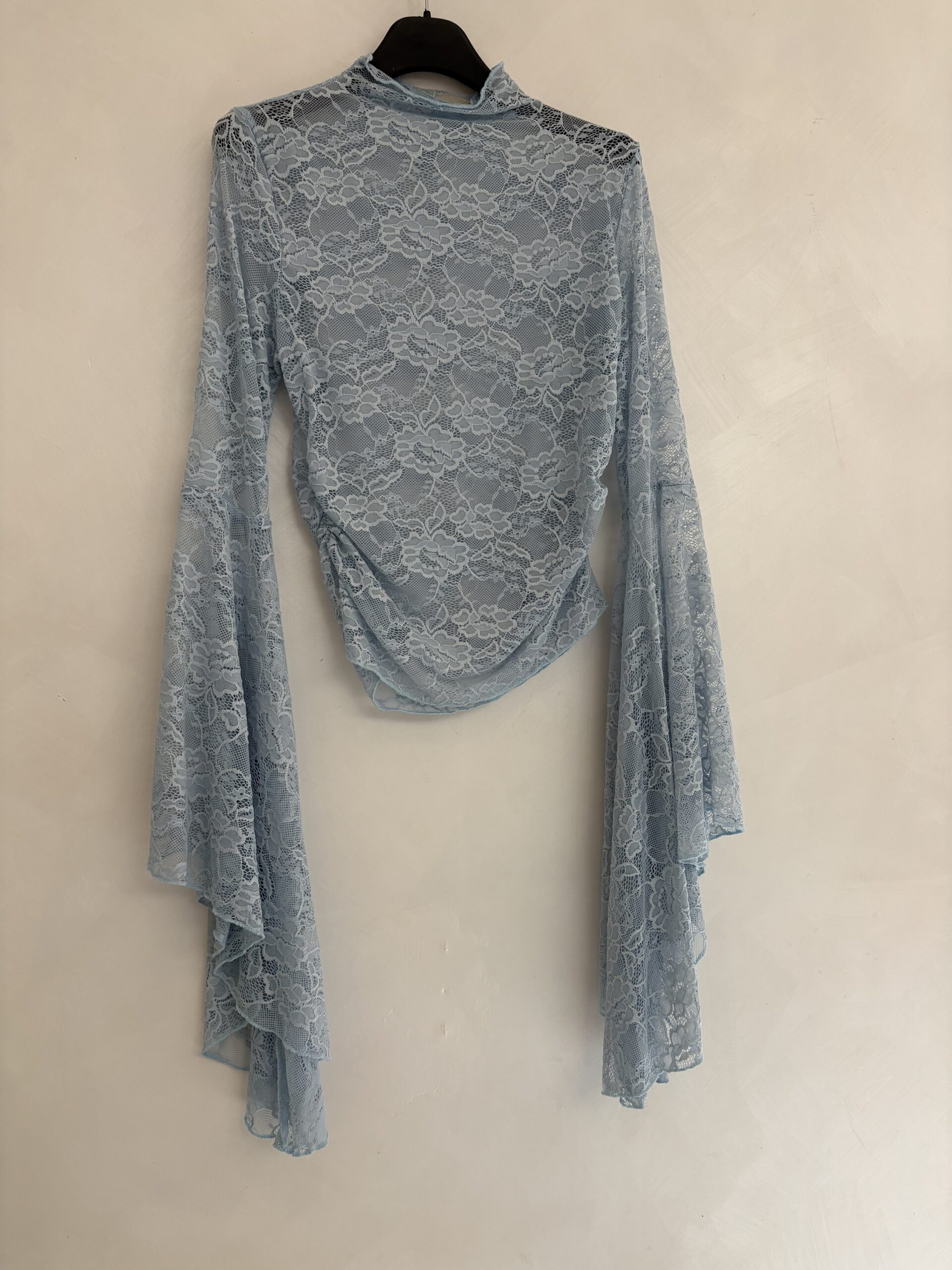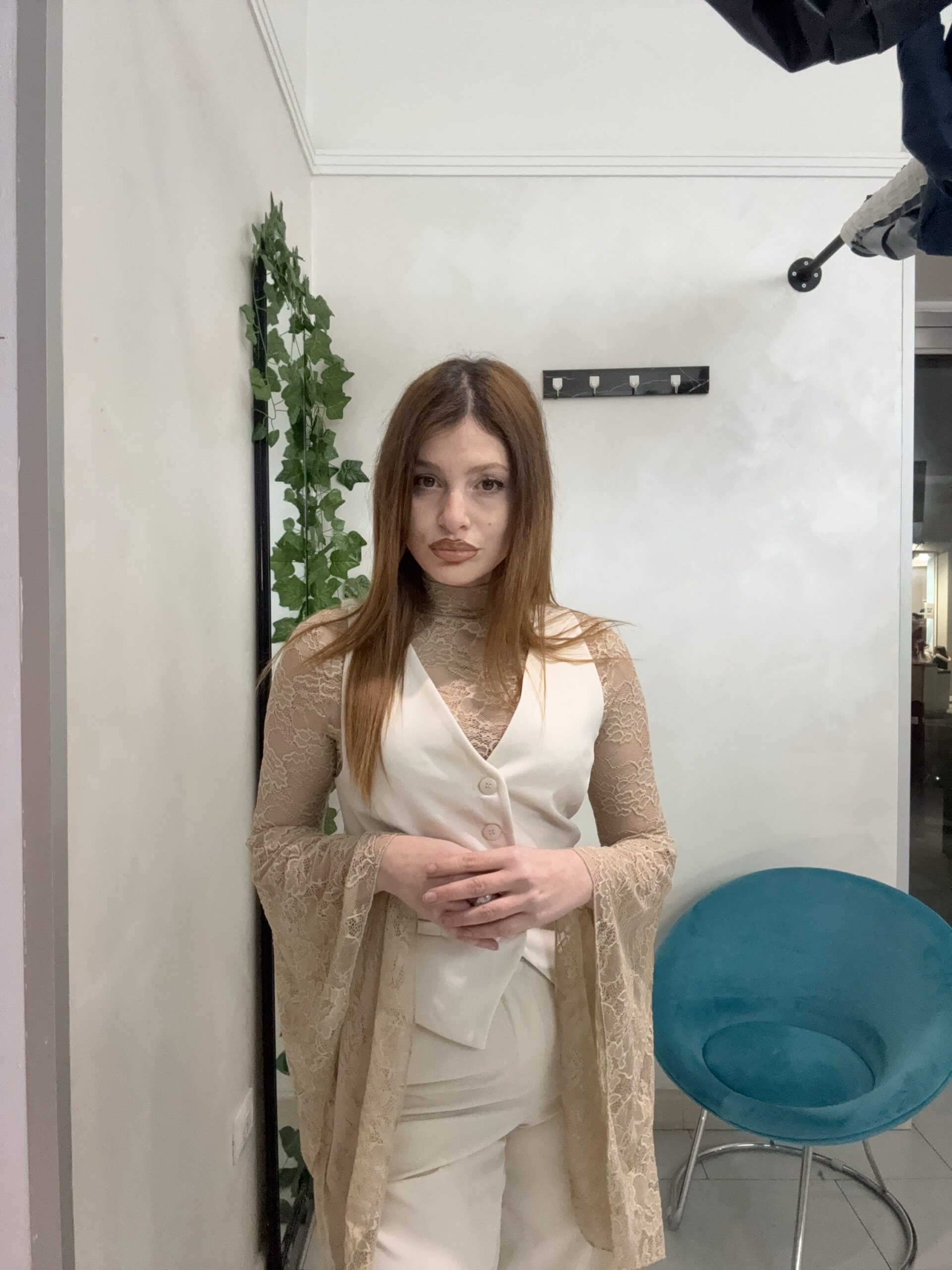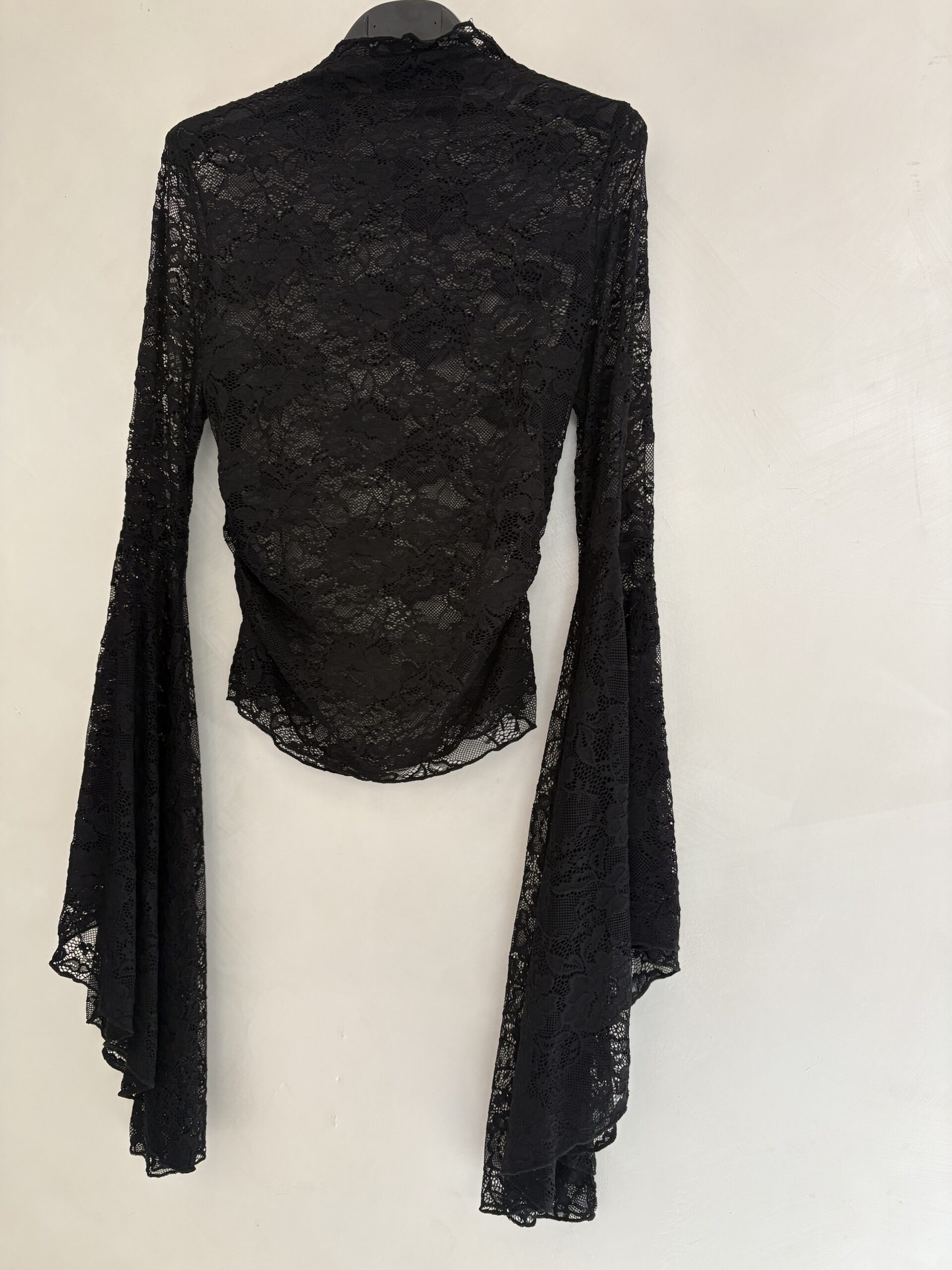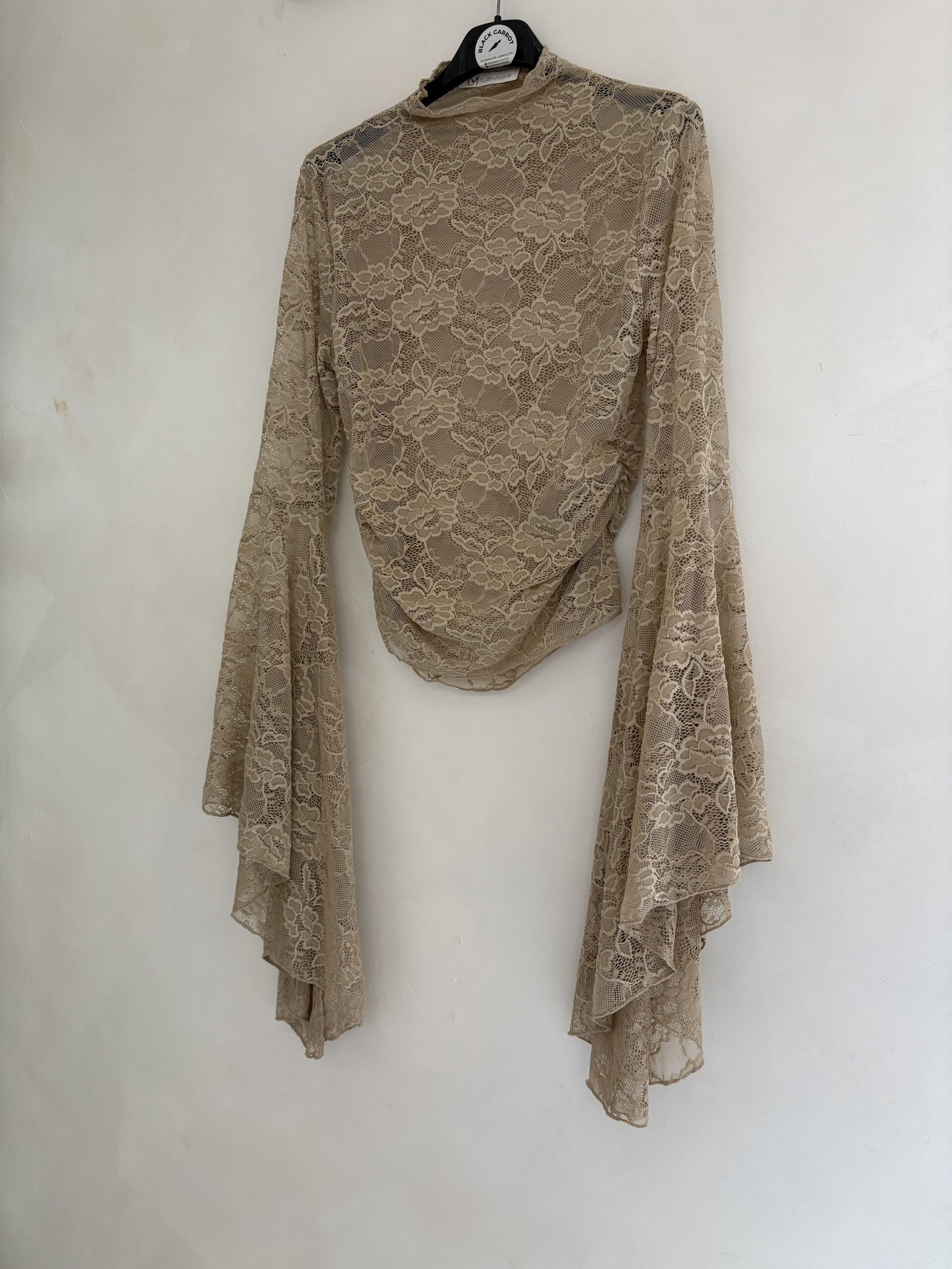 La nostra maglia in pizzo con maniche a campana è il capo che trasforma anche il look più semplice in qualcosa di ricercato. Il tessuto in pizzo crea trasparenze eleganti (mai eccessive), mentre la manica ampia aggiunge movimento e personalità.