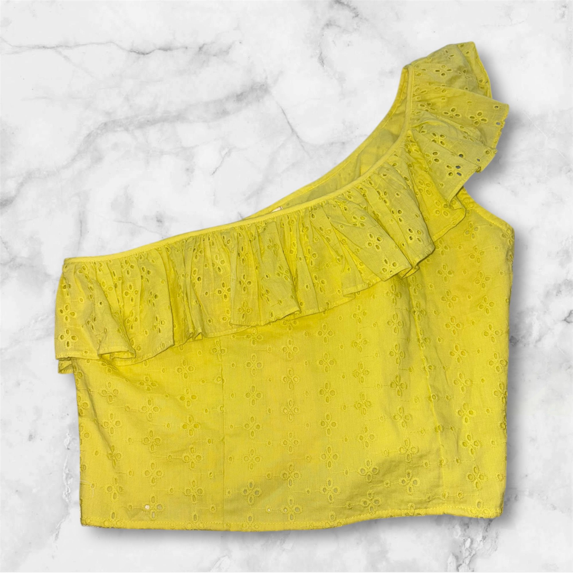 Monospalla foderato, in pizzo sangallo. Rouches su tutto il perimetro. Prodotto in 100% cotone